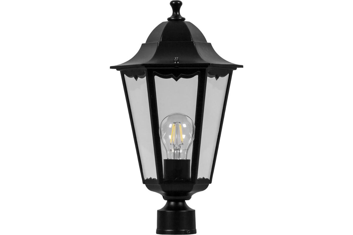 Светильник имеет форму шестигранника и крепится на столб (не идет в комплекте).