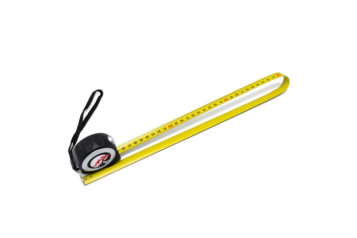 Прочный корпус из ABS пластика с резиновым покрытием устойчив к износу, а также не скользит в руке и обеспечивает надежный захват во время работы. Автоматический стопор придает удобство при замере, а усиленное стальное полотно не изламывается при вытягивании.