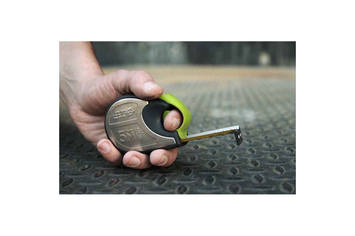 Не плохая рулетка, двусторонняя разметка ленты, нейлоновое покрытие, лента 25мм, автостоп, обрезинка, магнитный зацеп. Зацеп конечно хотелось бы пофункциональней, не понятно почему не сделали хотя бы двусторонним.